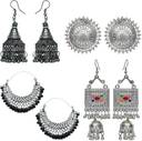 Stylish and Beautiful Oxidised Earrings Combo for Women. Set of 4 Earrings Includes Black Oxidised Jhumki, Silver Oxidised Big Stud, Chandbali and Jhumka Tassel