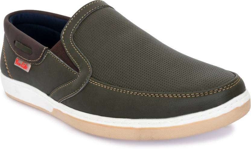 Fit-Man Slip-on Sneakers For Men (Olive) ,moccasin shoe