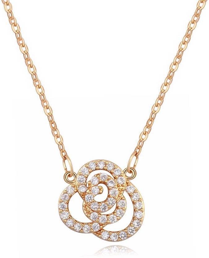 Floral Odyssey Collection Gold Plated Rose Charm Cubic Zirconia, Crystal Crystal, Alloy Necklace