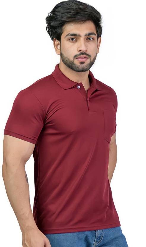 Men Solid Polo Neck Cotton Blend Red T-Shirt