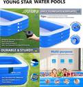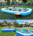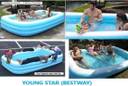 YOUNG STAR PRESENT BESTWAY Familiy jumbo 10feets length and 6feets breath water swimming pool for all family members and bath and swimm alon 4 to 7 people if having everage wt . Inflatable Size : 3.05m X 1.83m X 56 cm,: Tub Weight : 7.4 Kg Packing list : 1 * bathtub + 1 * Inflation Electric Pump, Inflatable pool for little swimmers and love to have fun in water and what better wayt han to let them enjoy in a miniature swimming pool this rectangular pool brings a of a real pool for use in the open space , save your kids and family members ( Specially womens ) from hot summer and let them enjoy the swimming pool inside the home safely 7 adults and 4 kid can sit in the tub at same time, spacious space with head rest , made from BPA less european standard pvc materials ( BPA less), made out of extra thick 3-layered pvc, it has a soft, air-filled bottom which makes it comfortable during use, practical, durable, easy to use and clean. Big size drain plug in the bottom for water release, this bath has been engineered for your comfort and for complete flexibility within your home ,gardens, resorts ,villas ( Both Indoor , Outdoor ), apart from fitting in your bathroom, this bathtub has been designed to be completely portable., you can use the tub in your middle hall itself, high plastic material, pack it up, take it outside with you, to your holiday home, to a friend's place , simply anywhere you can image, foldable bathtub to save space, easy to storage and carry. Ideal for home use, travelling, packed in a box with a inflation pump. It will be a great gift for your baby or your friends and families.