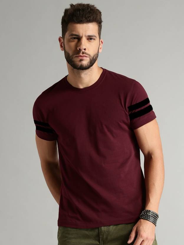 Men Solid Round Neck Pure Cotton Maroon T-Shirt