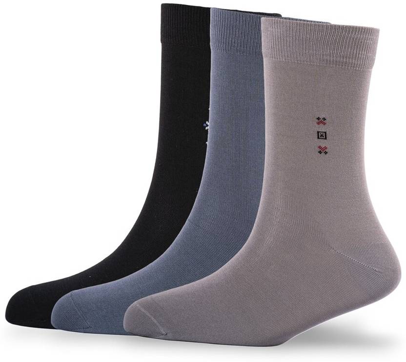 Young Wings Black Dark Grey & Lite Grey Cotton Regular Length Solid Casuals & Formals Wear Socks Socks Pack Of 3
