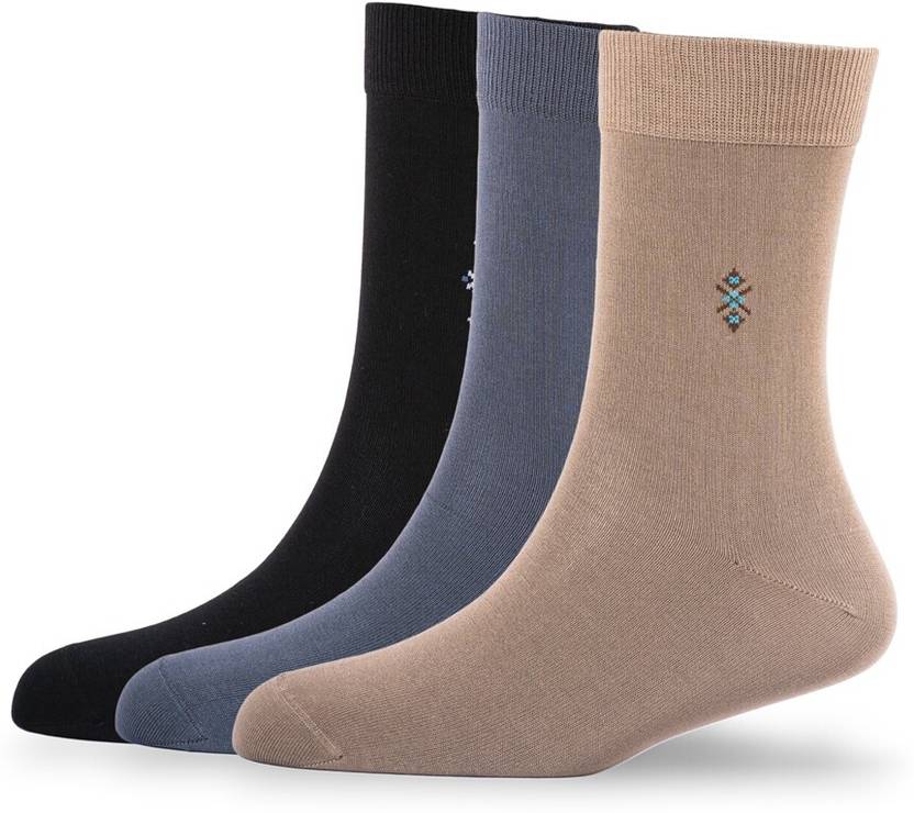 Young Wings Black Dark Grey & Skin Cotton Regular Length Solid Casuals & Formals Wear Socks Socks Pack Of 3