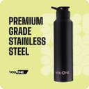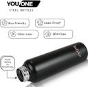 Youone Stainless Steel Water Bottle 1 Litre, Water Bottles For Fridge, School,Gym,Home 1000 ml Steel Bottle (Pack of 3, Black)