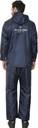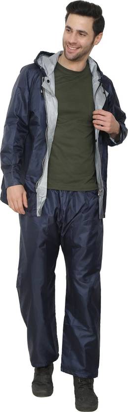 This Reversible Use Rainwear is made from double layered polyester fabric. Every joint is seam sealed with additional leak proof stitching making it completely waterproof. Overlaying flap with snap buttons over zippers prevents water seepage. It also comes with high collars, adjustable hood and side pockets with flaps for added protection. Small inner pocket to protect mobile or any other expensive items.Good quality elastics in trousers makes it super comfortable to wear.