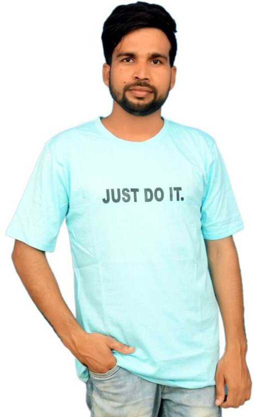 Men Printed Round Neck Polycotton Light Blue T-Shirt