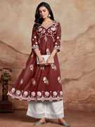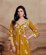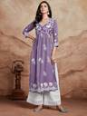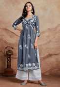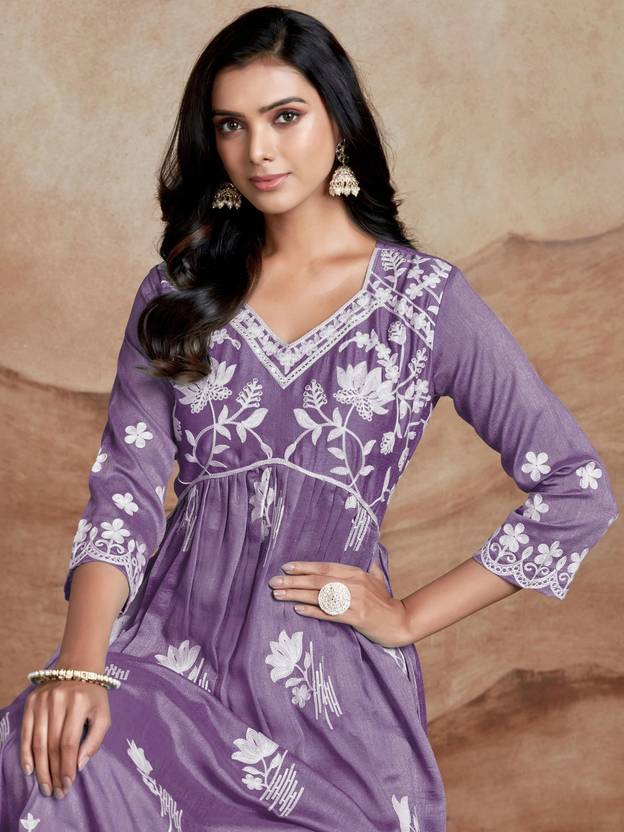 This Kurti Made of Vichitra Silk material And Embroidered Chikankari Work V-Neck.This Kurti is blased on Festive wear this kurti and look pretty all festivals party and special ocassion.