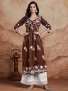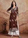 This Kurti Made of Vichitra Silk material And Embroidered Chikankari Work V-Neck.This Kurti is blased on Festive wear this kurti and look pretty all festivals party and special ocassion.