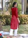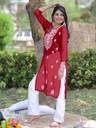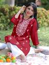 Youthnic Women Chikan Embroidery Straight Kurta (Maroon)