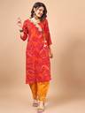 Kurta fabric- Pure Rayon,kurta length-Knee Length(44"Inch),kurta type-Straight,Kurta Work/Pattern-Bandhani
