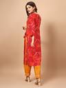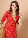 Add a splash of vibrant tradition to your wardrobe with Red Kurti, featuring intricate bandhani-inspired prints and a golden embellished neckline. Perfect for festive wear and casual outings, this lightweight kurti brings a modern touch to ethnic fashion. Pair it with your favorite leggings, palazzos, or pants to create your own unique look. Ideal for festive gatherings or everyday wear, this bandhani print kurti combines comfort and style effortlessly.