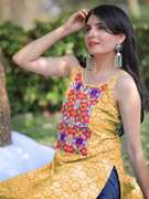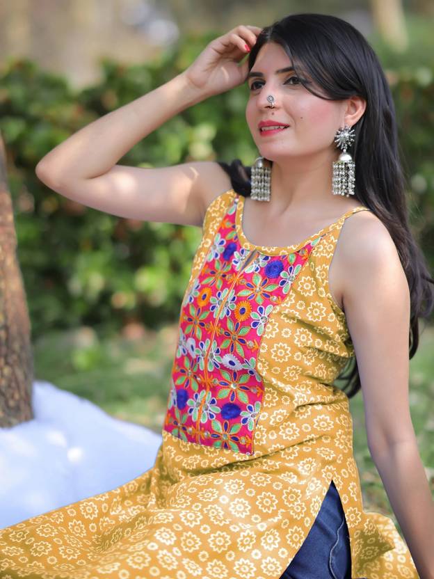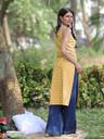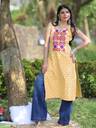 Bring your style game to elegance with this Shoulder Strpe Kurta with Blue Cotton Blend patch work by Youthnic featuring V neck with Embroidery detailing over Yoke and sleeve hem, Shoulder Stripe sleeves and straight fit.