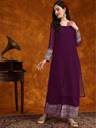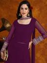 This Wine Colour Straight Kurta Made of Georgette material And Zari Lace Work Square Neck .This Straight Kurta Palazzo And Dupatta Set is blased on Festive wear this kurta and look pretty all festivals party and special ocassion.