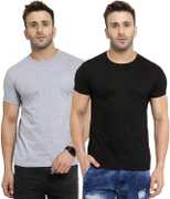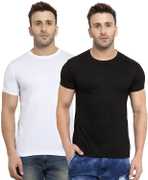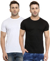 YouthPoi Solid Men Round Neck White, Black T-Shirt