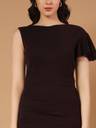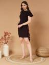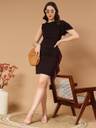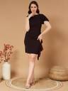This is a one piece front layered dress which has flutter one sleeve and boat neck which enhances the beauty of this dress and the side frill of this dress is the ornamentation in this dress as the look of this dress is on that only plus it is mid thigh length dress and it's bodycon even.....