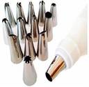Inclusions: 12 Piece Cake Decorating Set Frosting Icing Piping Bag Tips with Steel Nozzles, 3 pc cake scraper