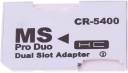Holds 2 cards for super large capacity. Card types can be mixed. Cards of different capacity and different type can be used concurrently (i.e. microSD + microSDHC). Specification / Features: Model: CR-5400 OS: Windows Vista XP,2000.Me,98SE,Mac OS 9.2,Mac OS, X,Linux Support: MicroSD 256MB â?? 2GB / MicroSDHC 4GB -16GB Speed: Super high read/write speed of 10 MB/s and up Size: 32mm x 20mm x 1.6mm(L x W x D) Package Includes: 1 x CR-5400 adapter Please take note of this step- by step instruction: 1. Format both micro sds in Windows. 2. Put them (the larger in the slot #1) inside the pro duo adapter. 3. Put the adapter inside the PSP, turn it on, and format the SD from the PSPâ??s XMB (Format Memory Stick) and choose yes. Both micro sds will become one , so if you add data then do it through the adapter(card reader) or the PSP in this case, do NOT ever add data per micro sd individually, as the data will get corrupted. Data Transfer can only be done with micro SDHC cards inserted in CR-5400. Direct PC to micro SDHC card data transfer and then inserting in CR-5400 wonâ??t work. Should you experience formatting problems (i.e. only half of the original capacity available), please format concerned micro SDHC card(s) in slot#1 of CR-5400 (slot#2 must be empty). Do this for every affected card. Now you can re-use your micro SDHC card(s) in other devices. If only 1 microSD(HC) cards is used, it must be inserted into slot#1 in order to work. When using new microSD(HC) cads, you need to format with a product before you can store data. In order to copy or delete data directly, insert CR-5400 in your card reader. Donâ??t take out the microSD(HC) cards and perform write operations on the single card. Your data will be corrupt.
