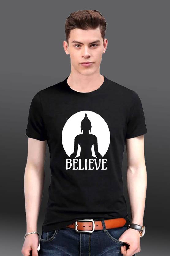 YTS Men Graphic Print, Typography Round Neck Pure Cotton Black T-Shirt