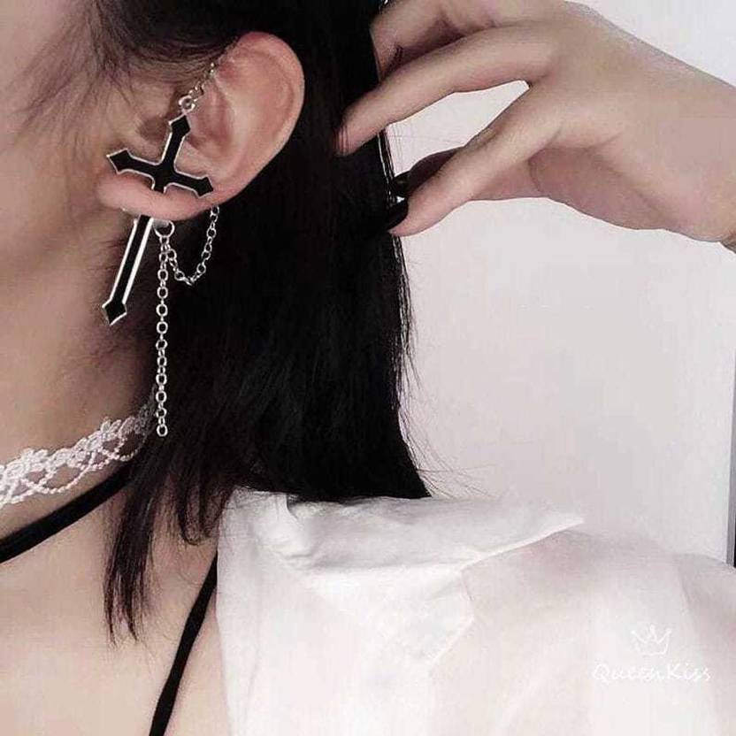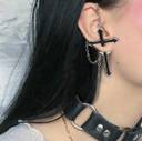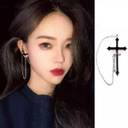 YU Fashions Black Enamel Painted Cross Chain Single Pc Earhook Ear Crawler Korean Earring Metal Drops & Danglers