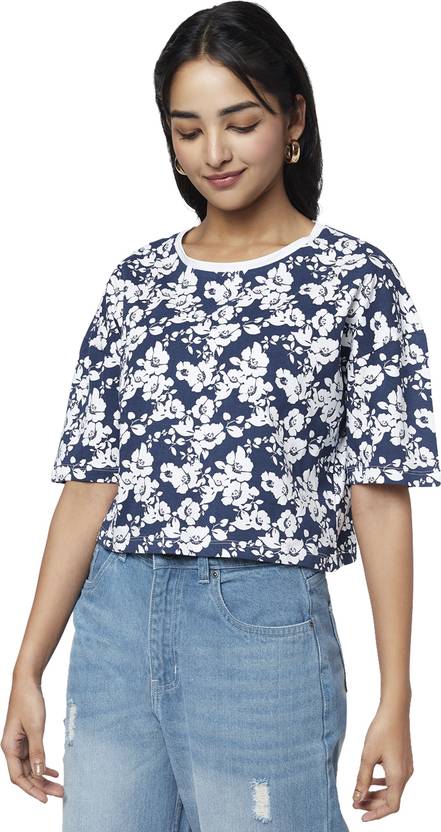 Strike a pose wearing this modish top on every outing for a picture-perfect look. It includes a round neck, drop-shoulder half sleeves, and an engaging all-over floral print. Constructed from superior, quality fabric that provides the best comfort and style from morning to evening.