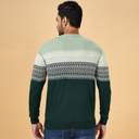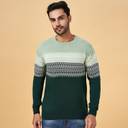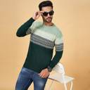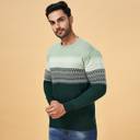 YU by Pantaloons Colorblock Round Neck Casual Men Green, White Sweater