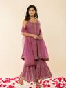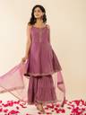 Purple Solid Silk Blend Straight style Kurta And Sharara with dupatta Kurta design:Thread_Work Straight shape Square Neck Sleeveless Thigh length Side Slits Kurta Straight hem,Silk Blend machine weave,Sharara design:Solid one Pocket Closer Slip on Top Fabric Silk Blend,Bottom Fabric Silk Blend Dupatta Fabric- Silk Blend