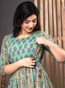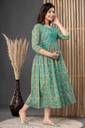 Printed Viscose Rayon Stitched Flared/A-line Gown (Green)