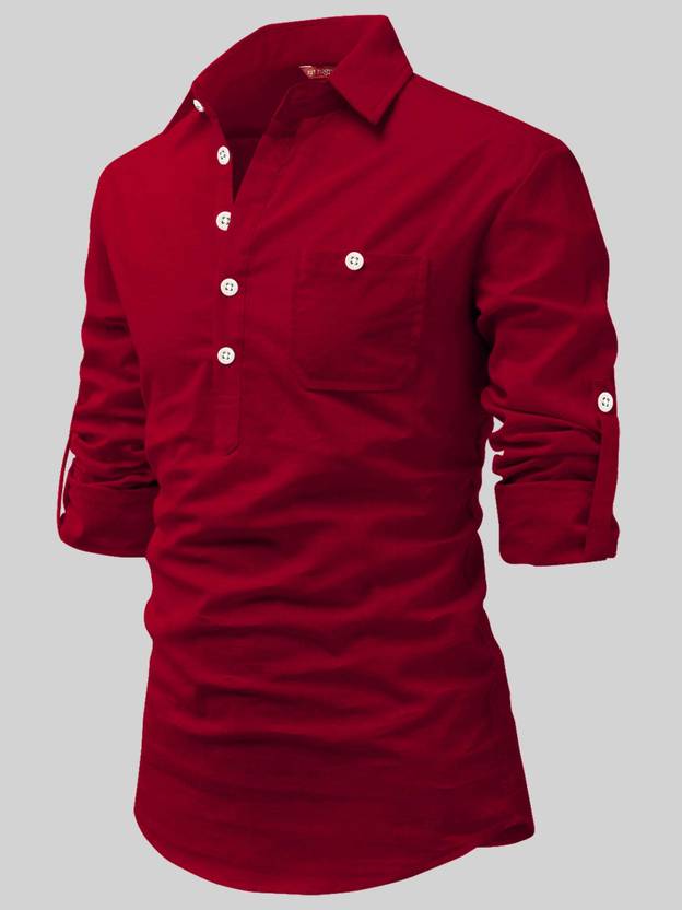 Yugnik Men Solid Pure Cotton A-line Kurta  (Red)