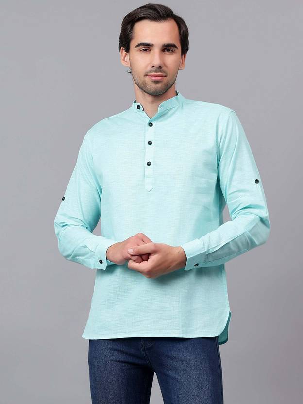 Yugnik Men Solid Pure Cotton A-line Kurta (Light Blue)