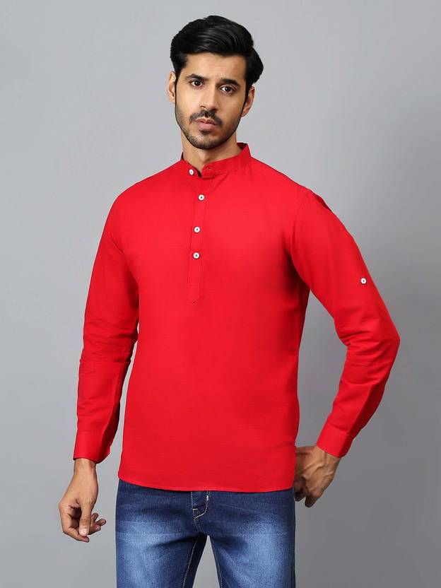 Yugnik Men Solid Pure Cotton A-line Kurta (Red)