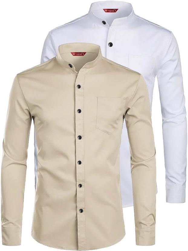 Yugnik Men Slim Fit Solid Mandarin Collar Casual Shirt (Pack of 2)