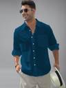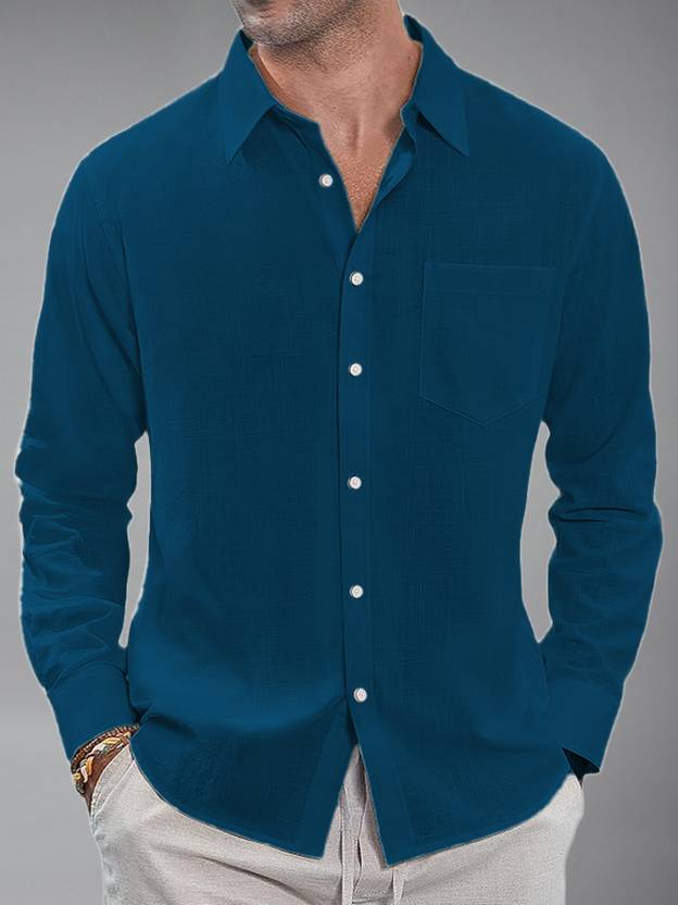 Men Slim Fit Self Design Spread Collar Casual Shirt