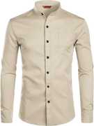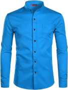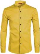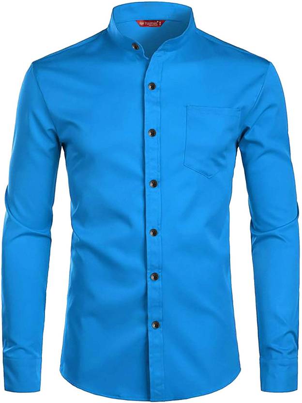 Yugnik Men Slim Fit Solid Mandarin Collar Casual Shirt