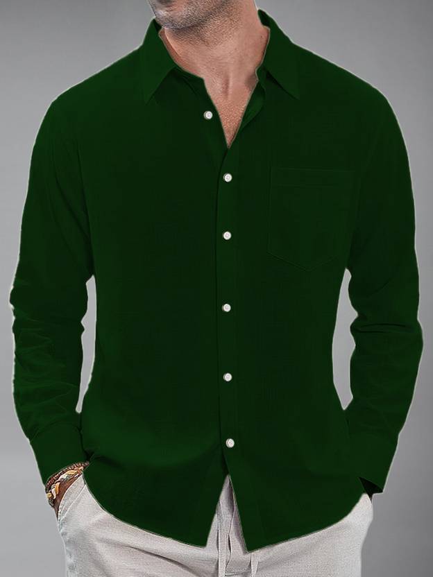 UNIFAV Men Self Design Casual Dark Green Shirt