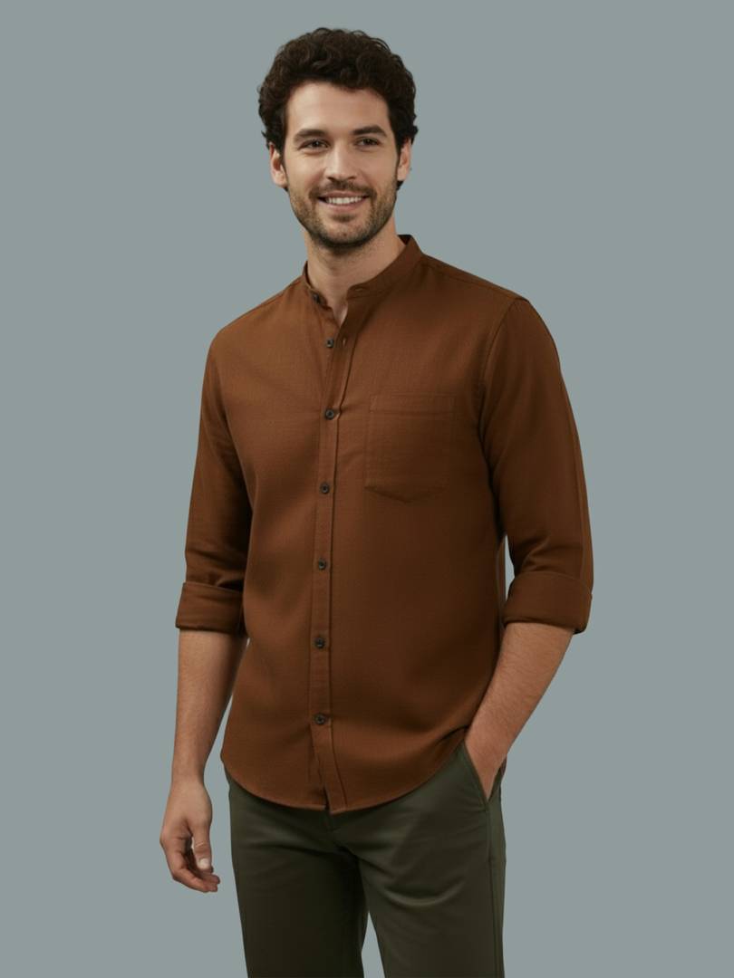 Yugnik Men Slim Fit Solid Mandarin Collar Casual Shirt