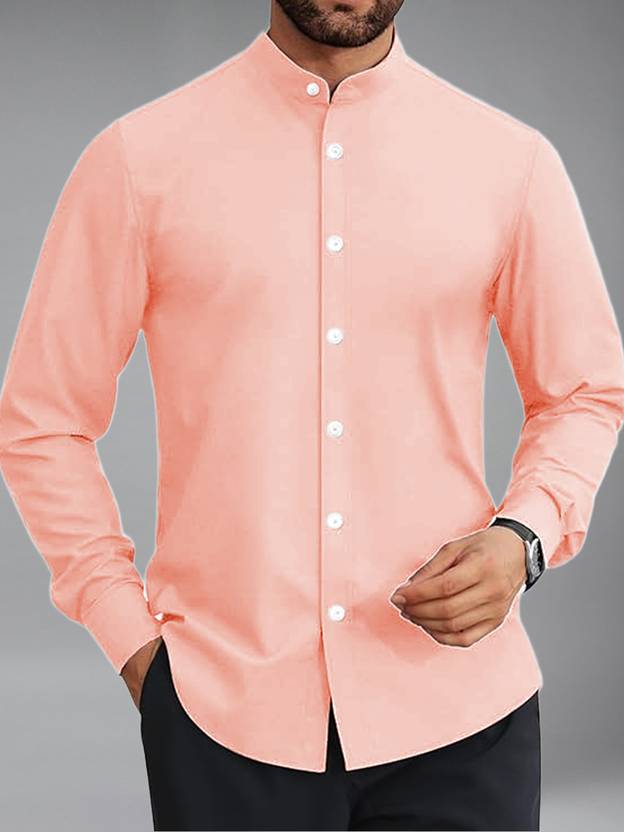 Yugnik Men Slim Fit Solid Mandarin Collar Casual Shirt
