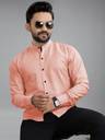Men Slim Fit Solid Mandarin Collar Casual Shirt