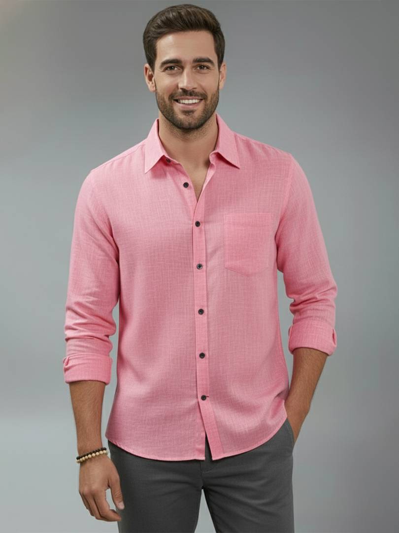 Men Slim Fit Solid Spread Collar Casual Shirt
