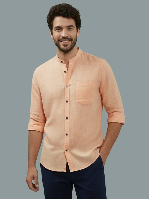 Yugnik Men Slim Fit Solid Mandarin Collar Casual Shirt