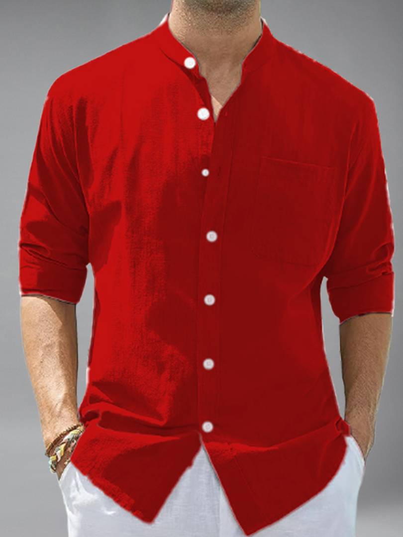 Men Slim Fit Solid Mandarin Collar Casual Shirt