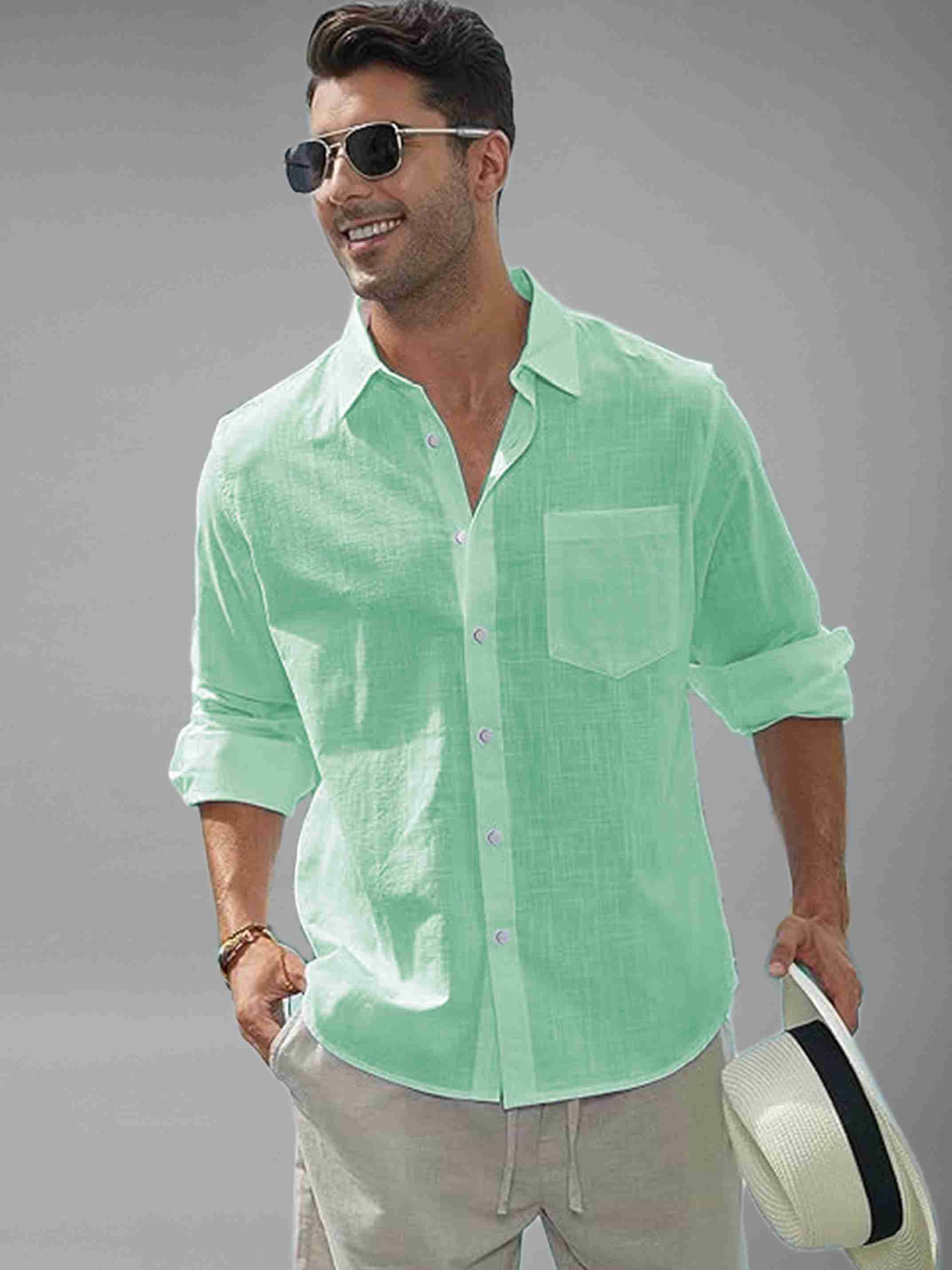 Men Slim Fit Solid Spread Collar Casual Shirt
