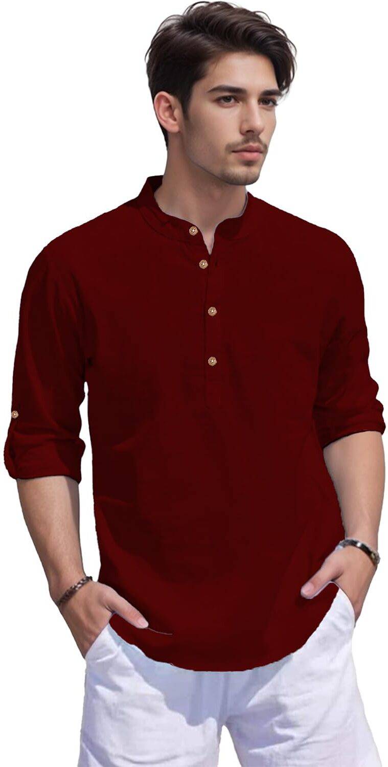 Yugnik Men Solid Cotton Blend Straight Kurta  (Maroon)