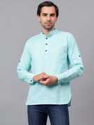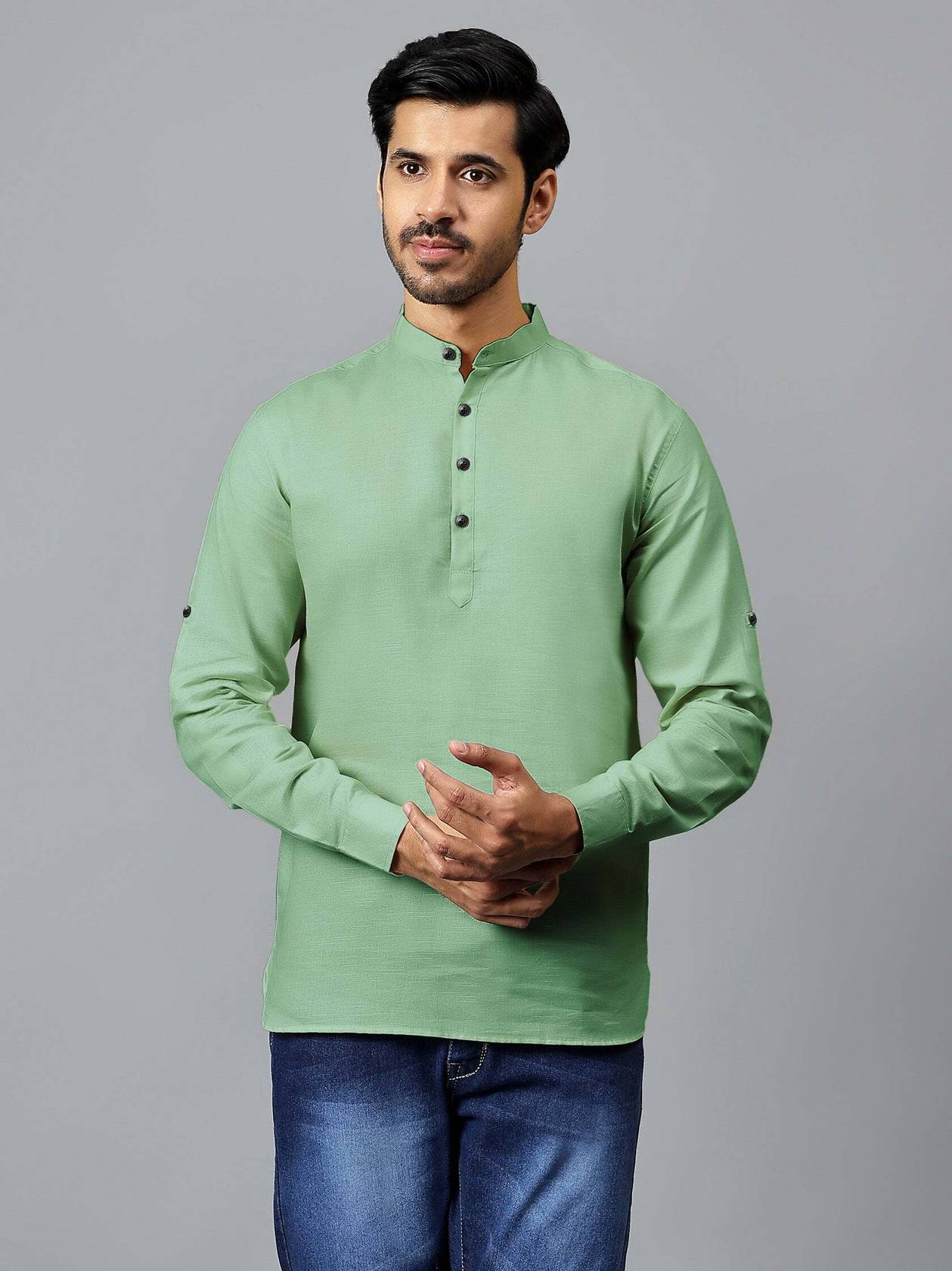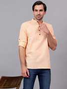 Pair this yellow short kurta with white or beige chinos for a classic look. For a festive touch, add a vibrant stole or dupatta. Complete the ensemble with mojaris or juttis, and accessorize with a sleek bracelet or watch. Whether you’re attending a festival or a casual gathering, this kurta ensures you stand out with elegance and comfort.