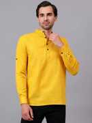 Elevate your style with the Yugnik Men's Yellow Cotton Short Kurta. Suitable for any occasion, festival, or party celebration, this versatile kurta is a wardrobe essential.