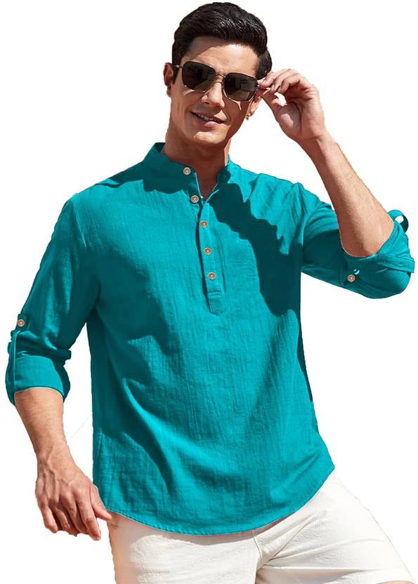 Elevate your style with the YUGNIK Men Cotton Blend Slim Fit Full Sleeve Short Kurta. Designed for men who value comfort and sophistication, this elegant beige kurta combines modern tailoring with timeless charm. Perfect for casual outings, festivals, or celebrations, it is crafted to suit every occasion. Key Features: • Fabric & Material: Made from Cotton Blend for breathable comfort and a super-soft feel. • Design: Solid beige color with a plain, minimalist look for versatile styling. • Fit & Closure: Slim fit with button closure for a tailored yet comfortable appearance. • Sleeve Style: Full roll-up sleeves for added flexibility and a trendy touch. • Collar & Hemline: Mandarin/Chinese collar paired with a curved hemline for a modern ethnic vibe. • Length: Short kurta style, perfect for pairing with both traditional and contemporary bottoms. How to Style This Short Kurta: 1. Casual Look: Pair with dark blue or black denim jeans and leather loafers for a laid-back yet polished appearance. 2. Traditional Ensemble: Combine with a pair of white or beige churidar for a festive or ethnic occasion. 3. Smart-Casual: Add chinos or straight-fit trousers, along with minimal accessories like a leather strap watch. 4. Layering Option: Layer it with a Nehru jacket or light ethnic vest for an added touch of sophistication. 5. Footwear: Pair with ethnic mojaris for a traditional look or sneakers for a modern casual outfit. Material & Care: • Material: Cotton Blend for ultimate comfort and durability. • Care Instructions: Suitable for both hand and machine wash. Use mild detergents for longer fabric life and avoid direct sunlight for drying to maintain the color. Why Choose This Kurta? • Versatile styling for casual and festive occasions. • Made from breathable, lightweight cotton for all-day comfort. • Tailored slim fit for a polished and trendy look. With YUGNIK’s Short Kurta, redefine your wardrobe with an effortlessly elegant style that merges tradition and modernity.