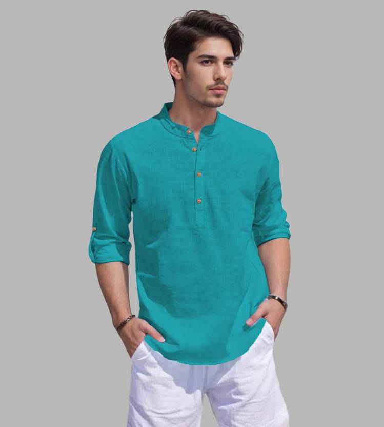 This pure cotton beige short kurta is perfect for men who value style and comfort. Its versatile design makes it ideal for any occasion—festivals, parties, or casual outings. Product Details ?? ????? Gender: Men ?? Pattern: Solid ?? Design Type: Plain ?? Closure: Button ?? Sleeve: Full Sleeve (Roll-Up Option) ?? Waist Rise: Mid-Rise ?? Collar: Mandarin/Chinese ?? Hemline: Curved ?? Fabric: Pure Cotton ?? Product Length: Short ?? Pack of: 1 Material & Care ?? Fabric: 100% Cotton Wash: Suitable for hand wash and machine wash. How to Style ?? Pair it with dark-wash denim or linen trousers for a casual look. Dress it up with a pair of churidar or slim-fit pants for festive occasions. Add leather sandals or loafers and a wristwatch for a classy finish. Roll up the sleeves for a relaxed vibe during daytime events. This short kurta seamlessly blends traditional elegance with modern styling, making it a wardrobe essential for every man! ??