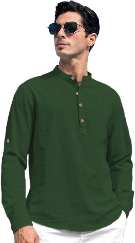 Yugnik Men Solid Straight Kurta (Dark Green)