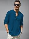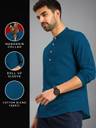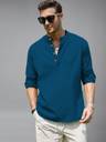 Yugnik Men Solid Cotton Blend Straight Kurta (Blue)