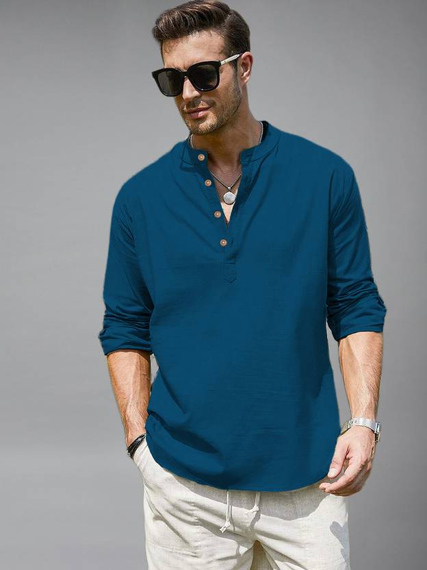 This cotton Blend Short Kurta is perfect for men who value style and comfort. Its versatile design makes it ideal for any occasion—festivals, parties, or casual outings. Product Details 📋 👨‍🦰 Gender: Men 🎨 Pattern: Solid 🧵 Design Type: Plain 🔘 Closure: Button 👕 Sleeve: Full Sleeve ⬆️ Waist Rise: Mid-Rise 🪡 Hemline: Curved 🌿 Fabric: Cotton Blend 📏 Product Length: Short 📦 Material & Care 🧺 Fabric: Cotton Blend Wash: Suitable for hand wash and machine wash. How to Style 🎯 Pair it with dark-wash denim or linen trousers for a casual look. Dress it up with a pair of churidar or slim-fit pants for festive occasions. Add leather sandals or loafers and a wristwatch for a classy finish. Regular the sleeves for a relaxed vibe during daytime events. This shirt kurta seamlessly blends traditional elegance with modern styling, making it a wardrobe essential for every man! 👌"